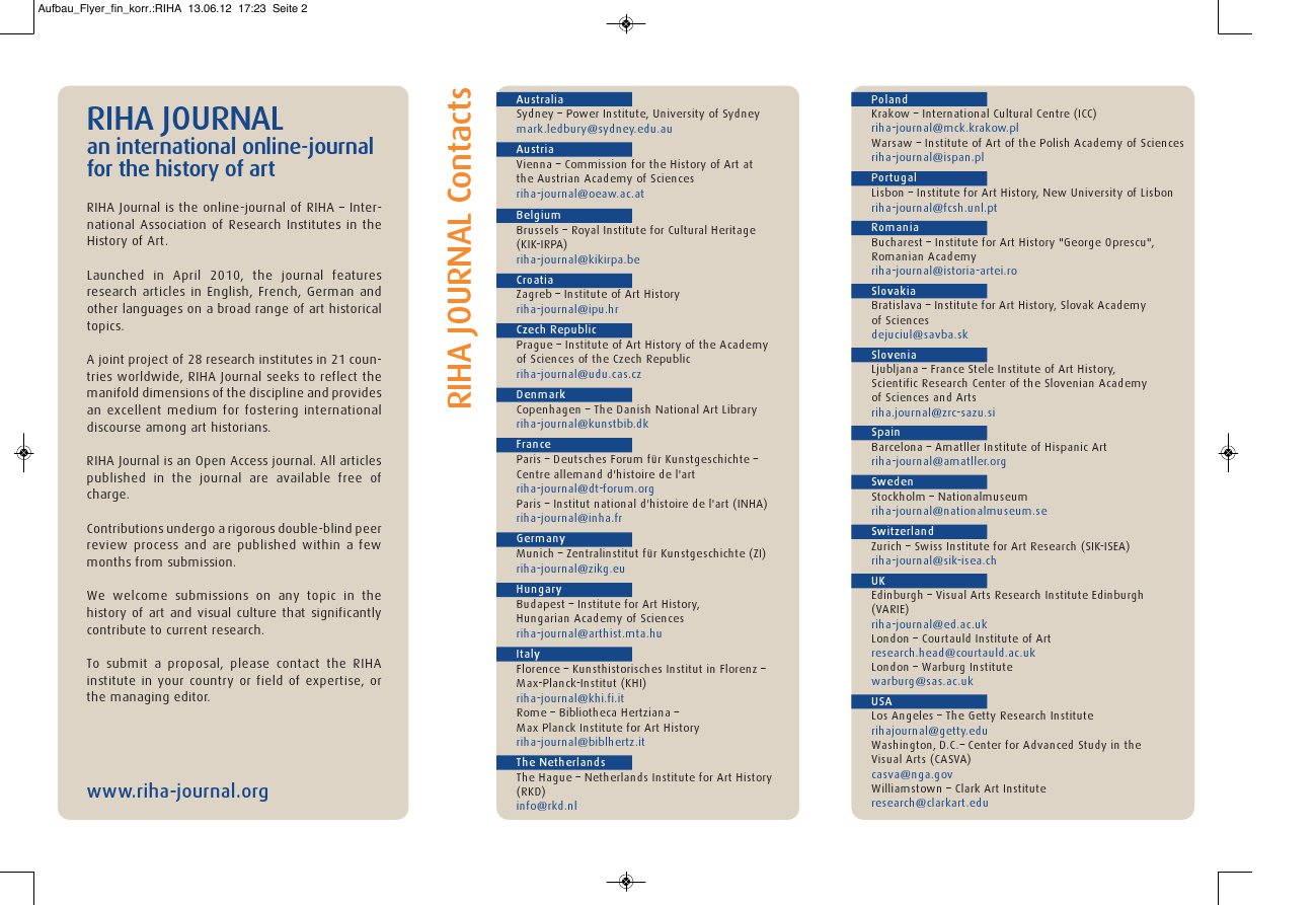 A nemzetközi RIHA Journal online folyóiratba várjuk szakcikkeiket akár magyarul, akár a CIHA öt hivatalos nyelvének bármelyikén. Bővebben az alábbi prezentációból illetve a folyóirat honlapjáról tájékozódhatnak!