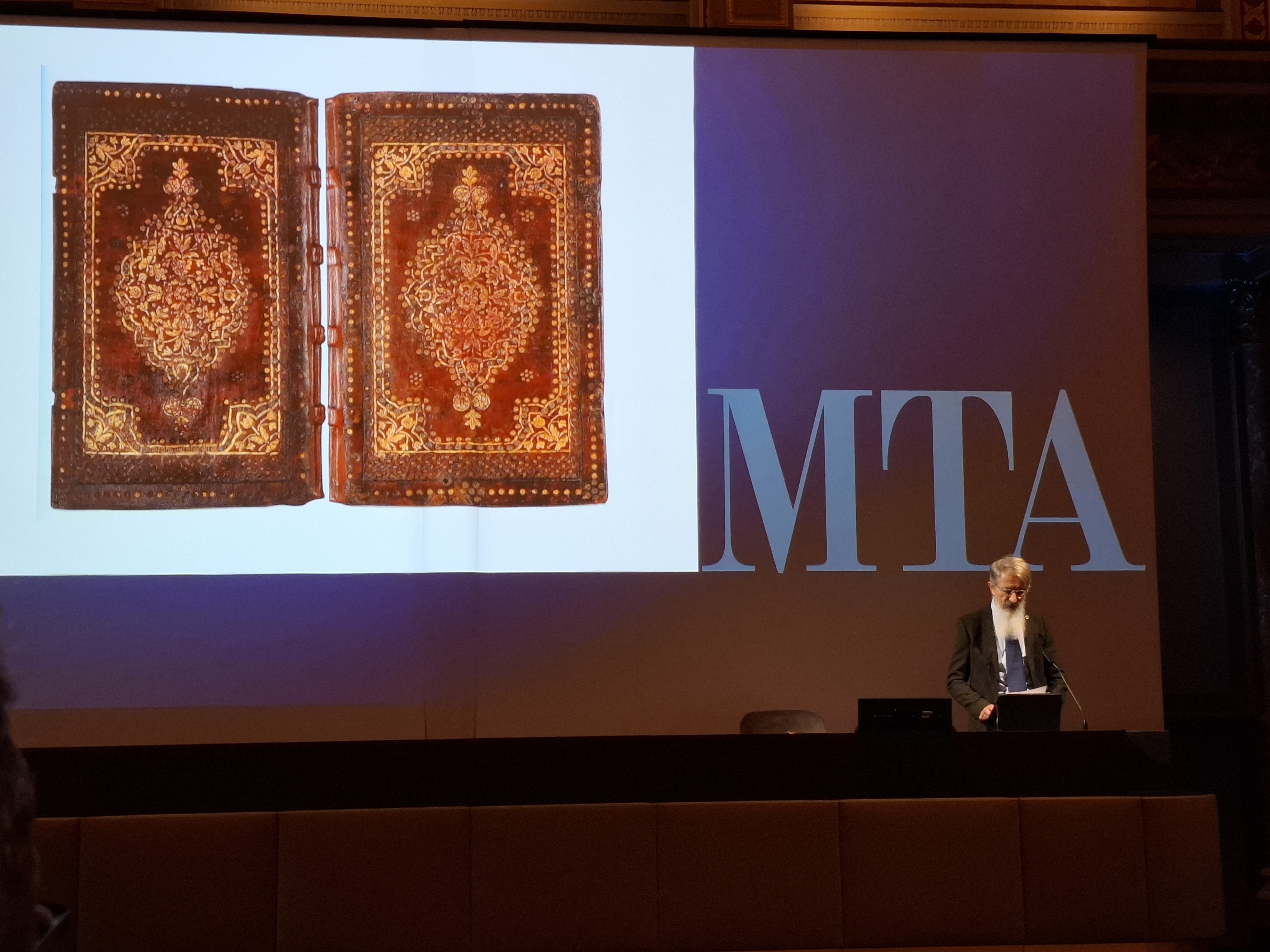 Fotó: Zsupán EdinaAz előadás – Kutatások a Corvina könyvtár körül – Mikó Árpád több évtizede folytatott kutatómunkájának főbb témái érintésével tekintette át a könyvtárra vonatkozó tudományos vizsgálódások mintegy másfélszázados történetét. A narráció bevonta tárgyai közé az esemény helyszínét, a dísztermet is, amelynek egyik fő képén Mátyás királyt a tudósok és művészek a Corvina könyvtárban veszik körül (Lotz Károly, 1891). A 19. század utolsó harmadától napjainkig tartó, kacskaringós történet vissza-visszatérő elemei – a historiográfia, a recepciótörténet, a stíluskritika, a Corvina aranyozott bőrkötéseinek problémái – mind azt a kérdést feszegetik, hogy miként viszonyulnak az izolált részeredmények a Corvinának mint egésznek a vizsgálatához. Az esemény megtekinthető az MTA YouTube csatornáján: